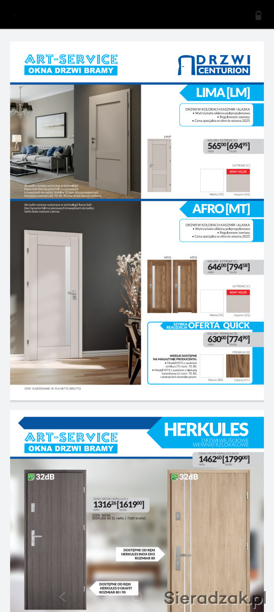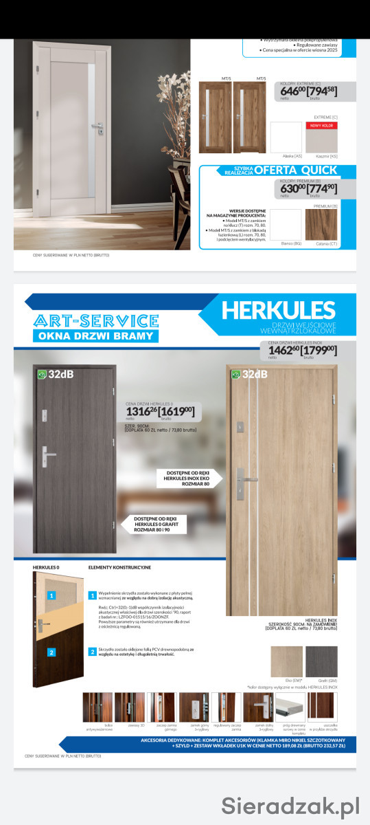 Podana cena brutto kompletnych drzwi