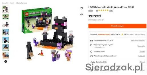 Witam, sprzedam zestaw Lego Minecraft. Cena pojedynczo nie podlega negocjacji, natomiast przy kupnie większej ilości zestawów przewiduję rabat. Zapraszam na inne moje oferty po zestawy LEGO Minecraft i LEGO Friends.