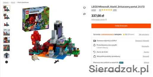Witam, sprzedam zestaw Lego Minecraft. Cena pojedynczo nie podlega negocjacji, natomiast przy kupnie większej ilości zestawów przewiduję rabat. Zapraszam na inne moje oferty po zestawy LEGO Minecraft i LEGO Friends.
