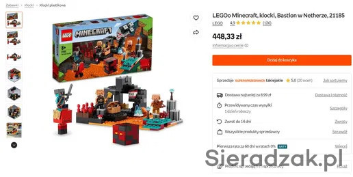 Witam, sprzedam zestaw Lego Minecraft. Cena pojedynczo nie podlega negocjacji, natomiast przy kupnie większej ilości zestawów przewiduję rabat. Zapraszam na inne moje oferty po zestawy LEGO Minecraft i LEGO Friends.
