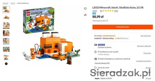 Witam, sprzedam zestaw Lego Minecraft. Cena pojedynczo nie podlega negocjacji, natomiast przy kupnie większej ilości zestawów przewiduję rabat. Zapraszam na inne moje oferty po zestawy LEGO Minecraft i LEGO Friends.
