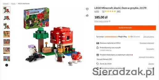 Witam, sprzedam zestaw Lego Minecraft. Cena pojedynczo nie podlega negocjacji, natomiast przy kupnie większej ilości zestawów przewiduję rabat. Zapraszam na inne moje oferty po zestawy LEGO Minecraft i LEGO Friends.