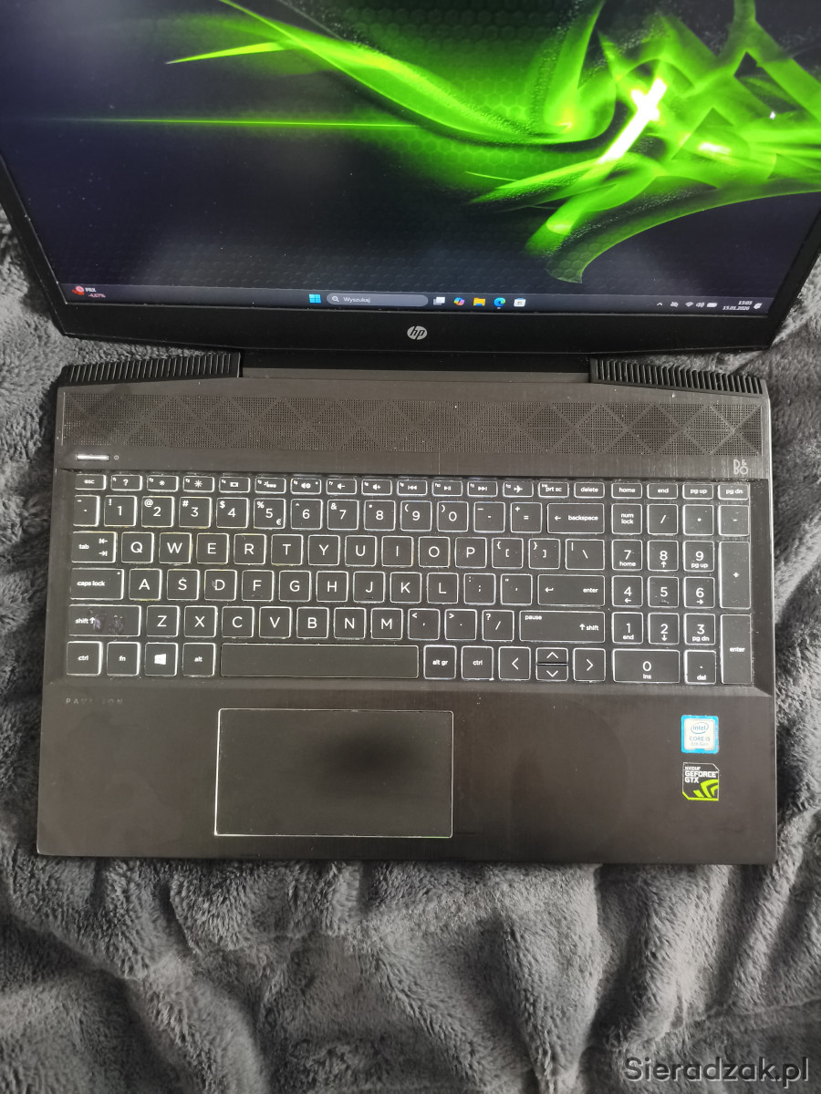 Laptop ma podświetlaną klawiaturę, laptop jest używany i posiada oznaki użytkowania ale jest w pełni sprawny, matryca FullHD 15.6 cala.