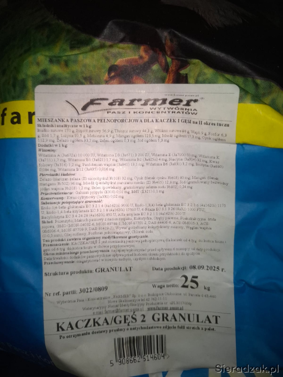 Skład Opału Puchatek zaprasza do zakupu paszy dla kaczek i gęsi od marki Farmer, dostępnej bezpośrednio na naszym, składzie.
