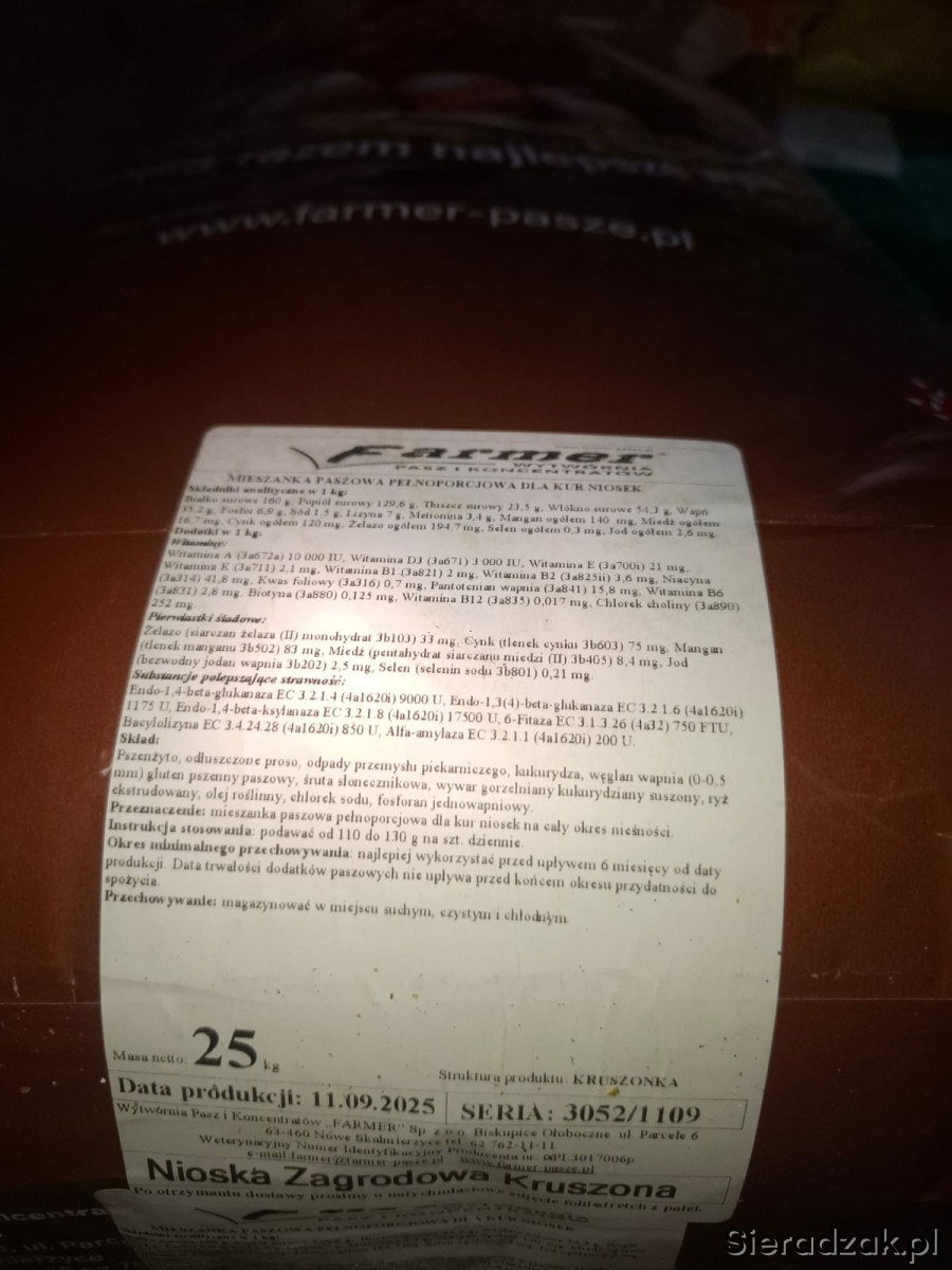 Skład Opału Puchatek zaprasza do zakupu paszy dla kur Niosek kruszonej, marki Farmer, dostępnej bezpośrednio na naszym, składzie.