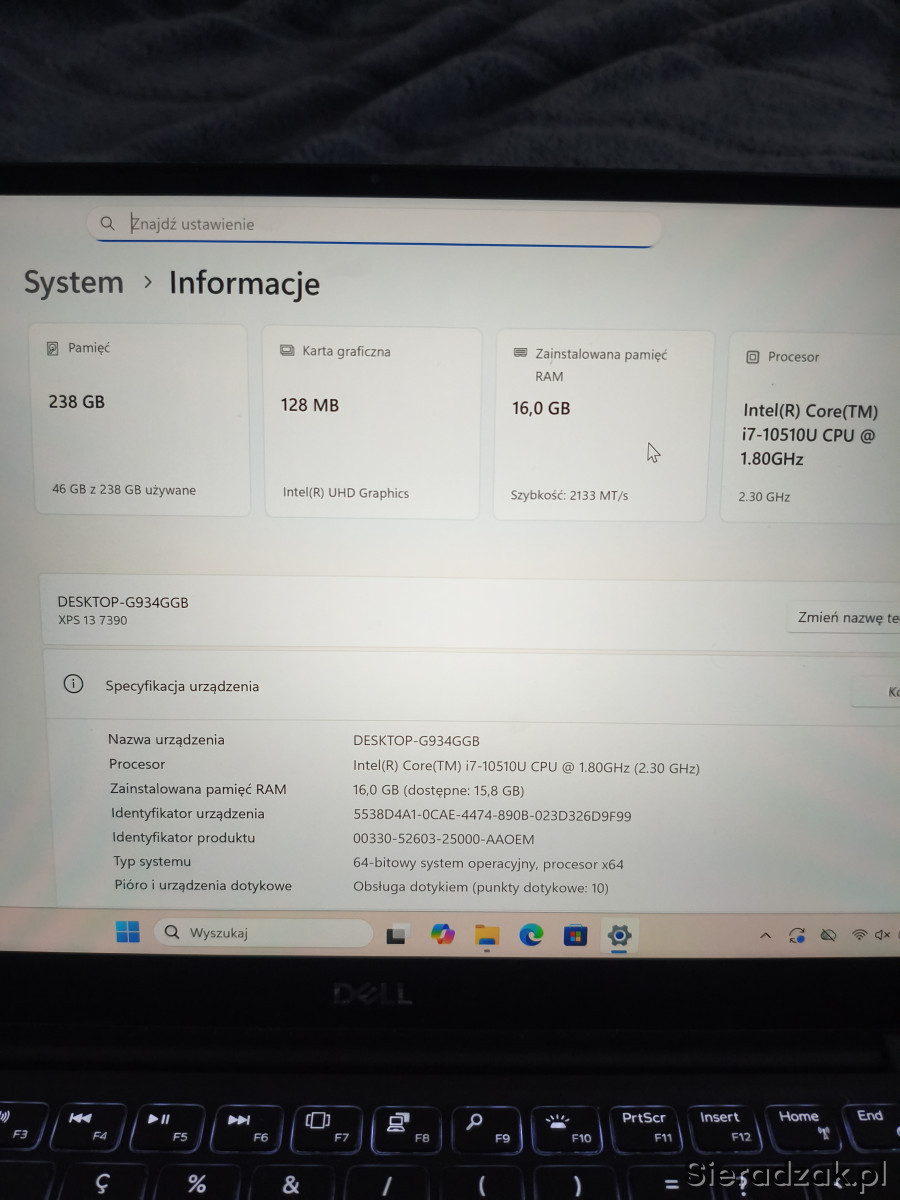 Na sprzedaż laptop premium, Dell XPS 7390, jest to świeży oraz szybki sprzęt ponieważ posiada procesor i7-10 generacji, 16GB Ram oraz 256GB dysk SSD M2 Nvme (jest możliwość wymiany dysku u mnie na 512gb bądź 1tb).