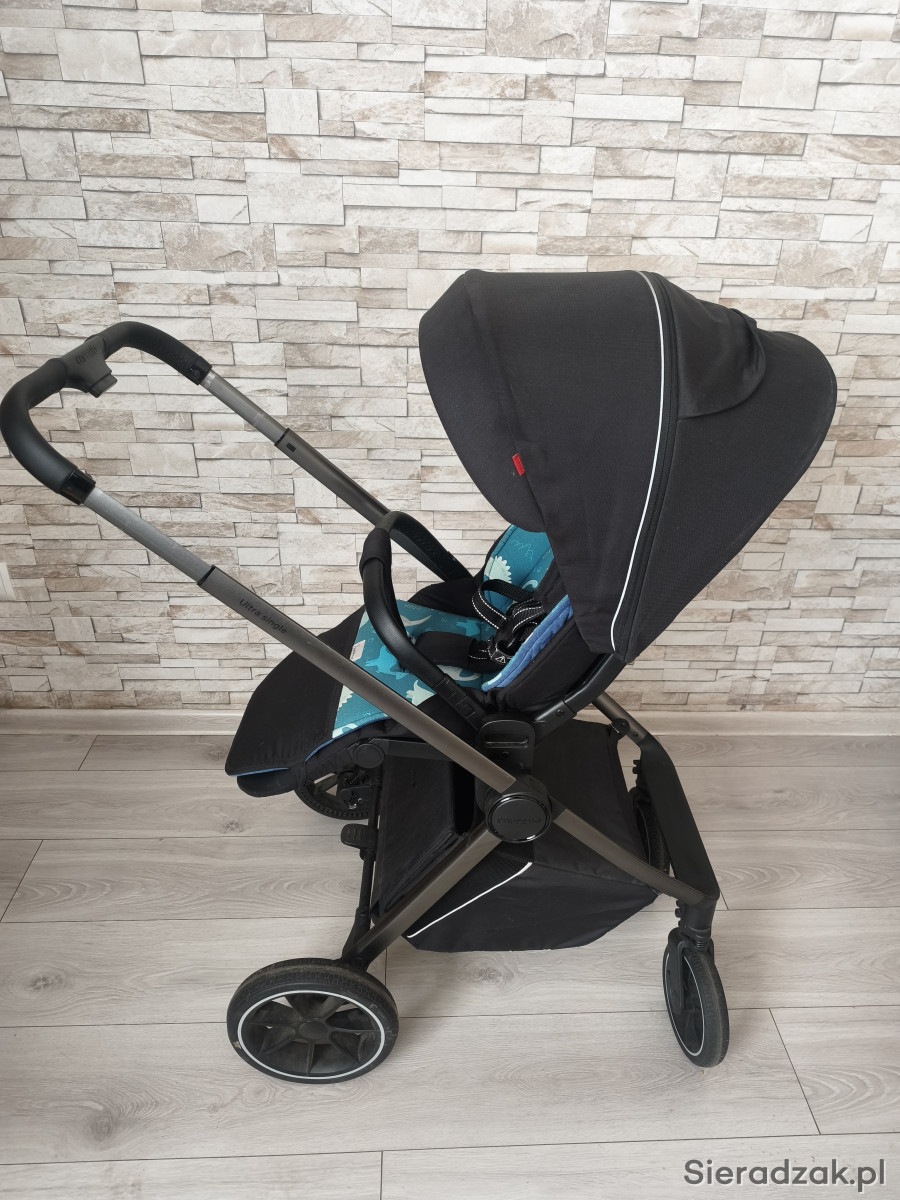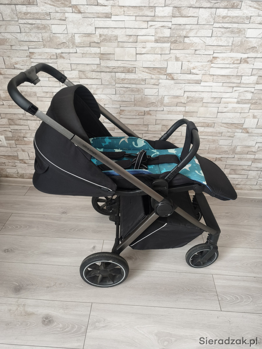 Sprzedam spacerówkę carello ultra. Jazda tyłem i przodem. Kolor czarny. Dorzucam pokrowiec dwustronny, z jednej welur granat z drugiej dinozaury. Pokrowiec na nóżki i folia w zestawie. Wózek posiada jeszcze gwarancję. Stan idealny.