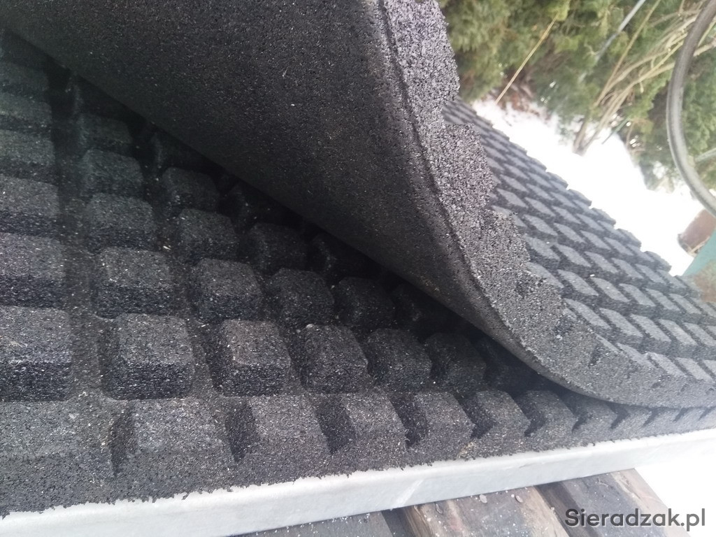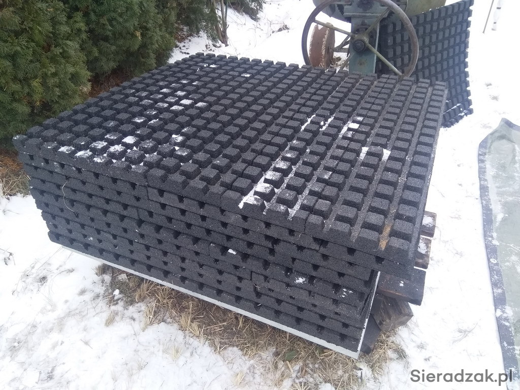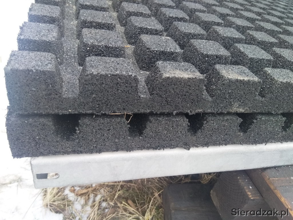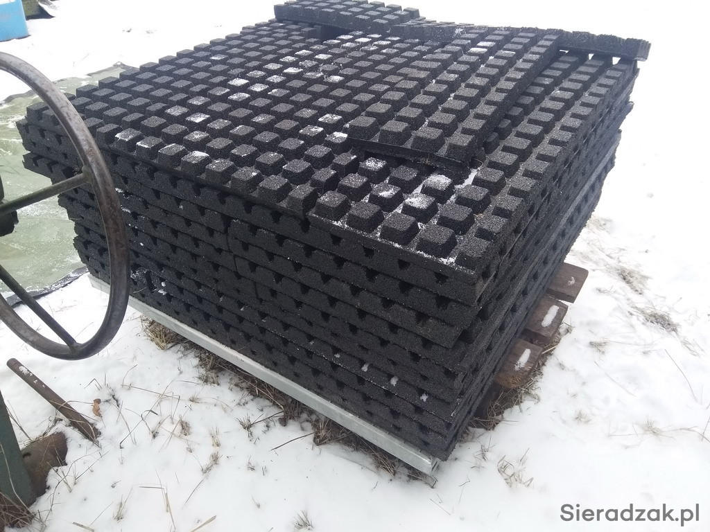 Mam na sprzedaż nowe płyty gumowe o grubości 4 cm. Wzór kwadratowy na gumie o wymiarach 40x40.