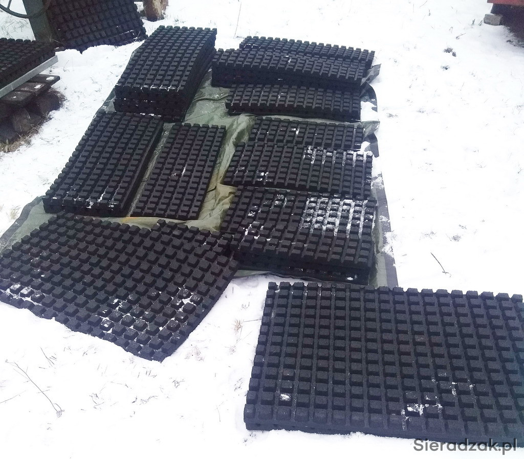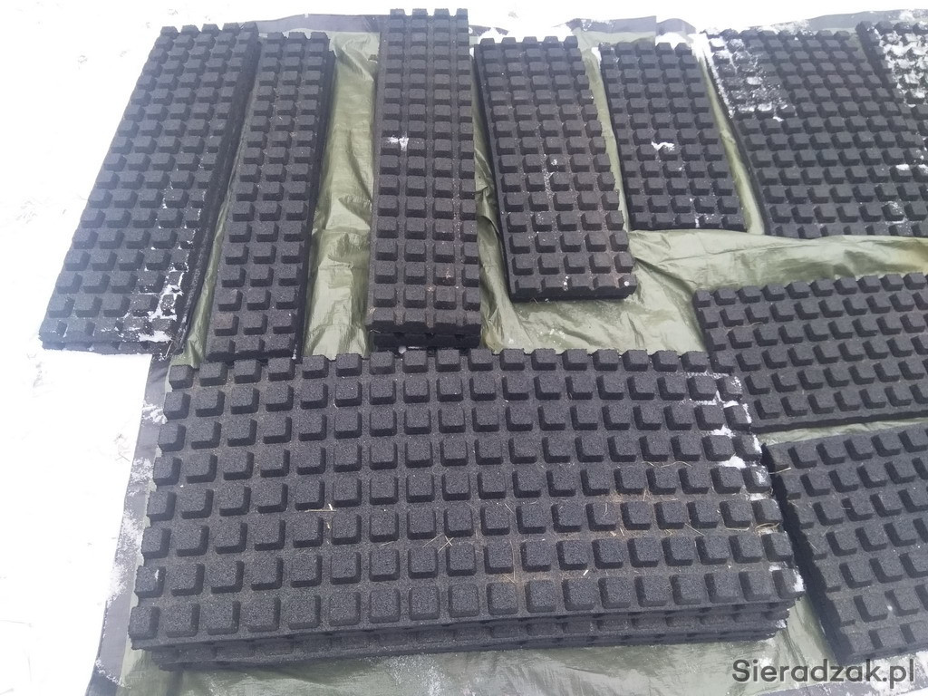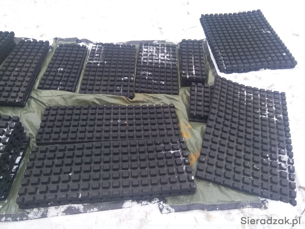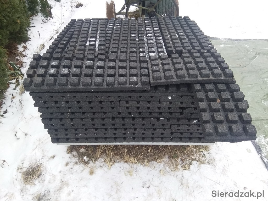 Mam na sprzedaż nowe płyty gumowe o grubości 4 cm. Wzór kwadratowy na gumie o wymiarach 40x40.
