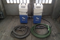 Odsysany pył jest gromadzony w pojemniku na pył. Urządzenie jest wyposażone w dwa przyłącza, umożliwiające podłączenie dwóch węży i jednoczesne odsysanie z wielu stanowisk roboczych.