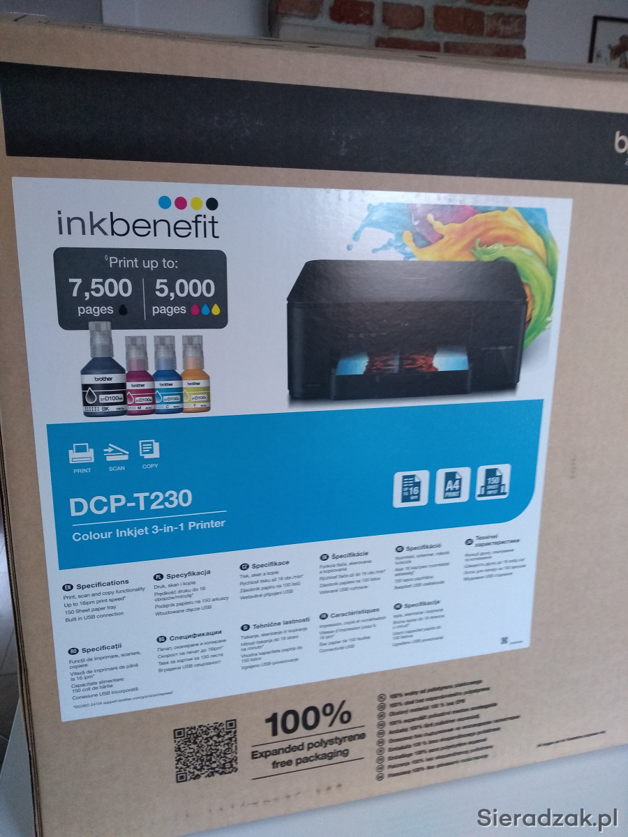 Witam. Sprzedam drukarkę Brother DCP T-230 (drukarka, kopiarka, skaner). Urządzenie nowe, nie używane, na gwarancji. Zakupione przeze mnie w grudniu zeszłego roku.