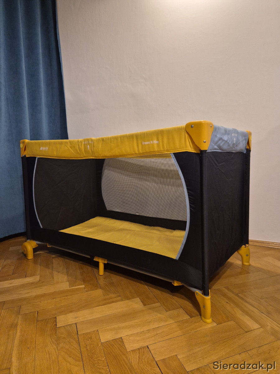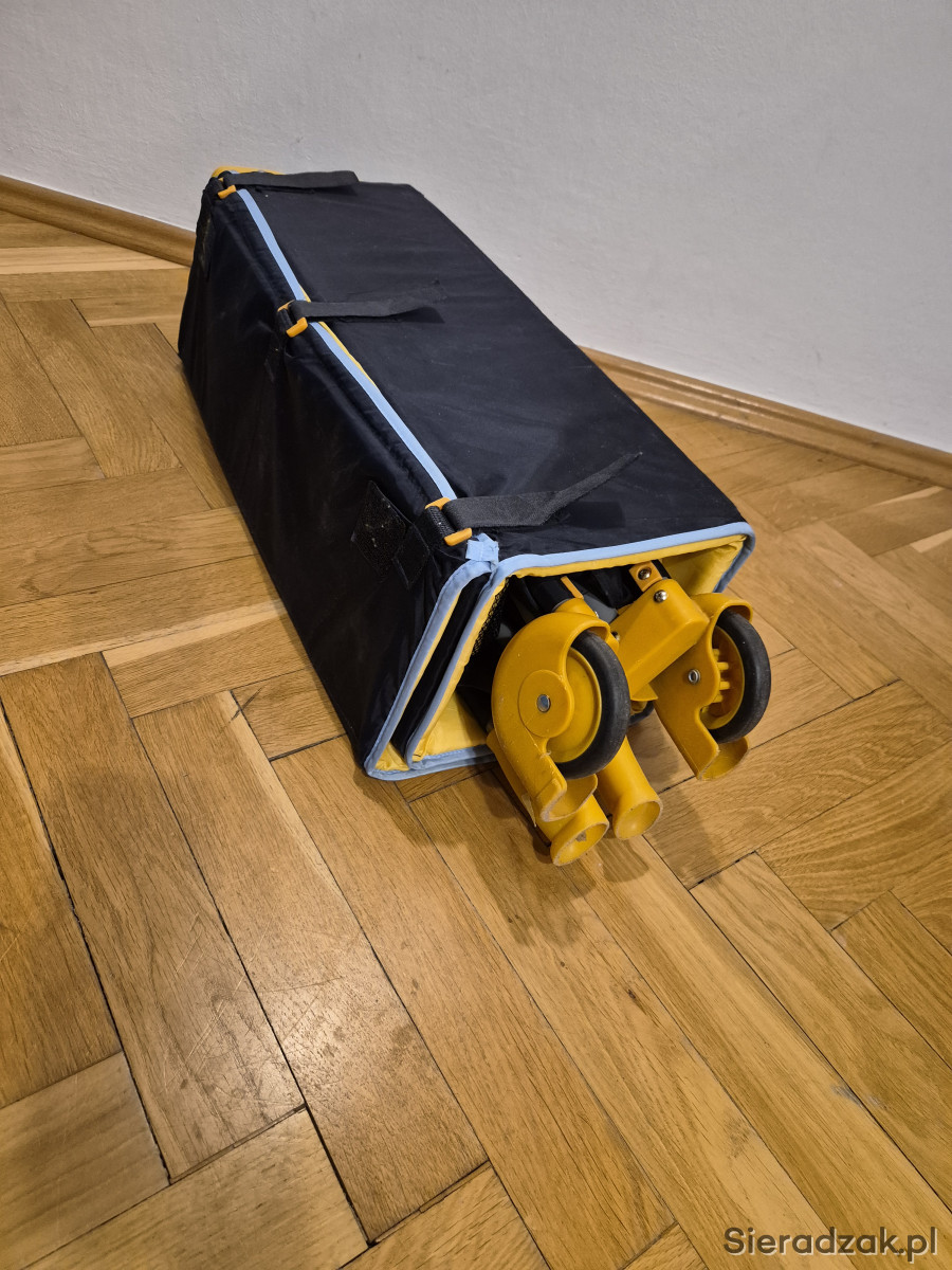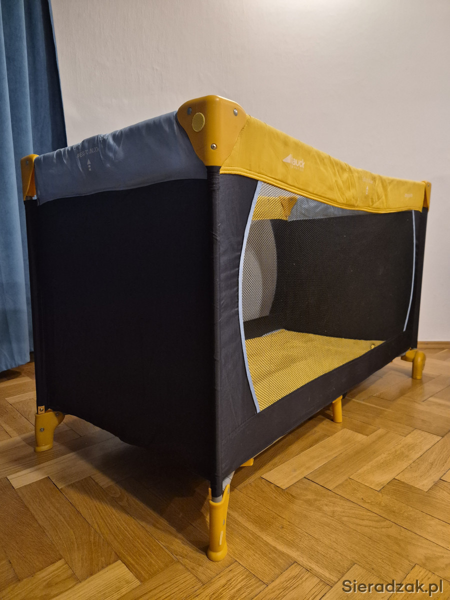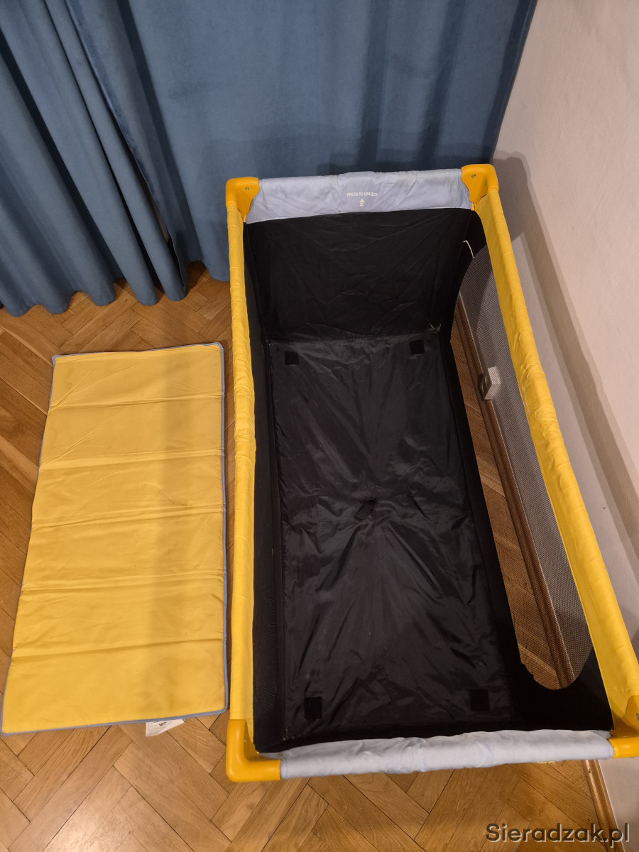 Łóżeczko turystyczne do sprzedania - wygodne i mobilne. Łatwo się składa i rozkłada. Można przesuwać- ma dwa kółka.