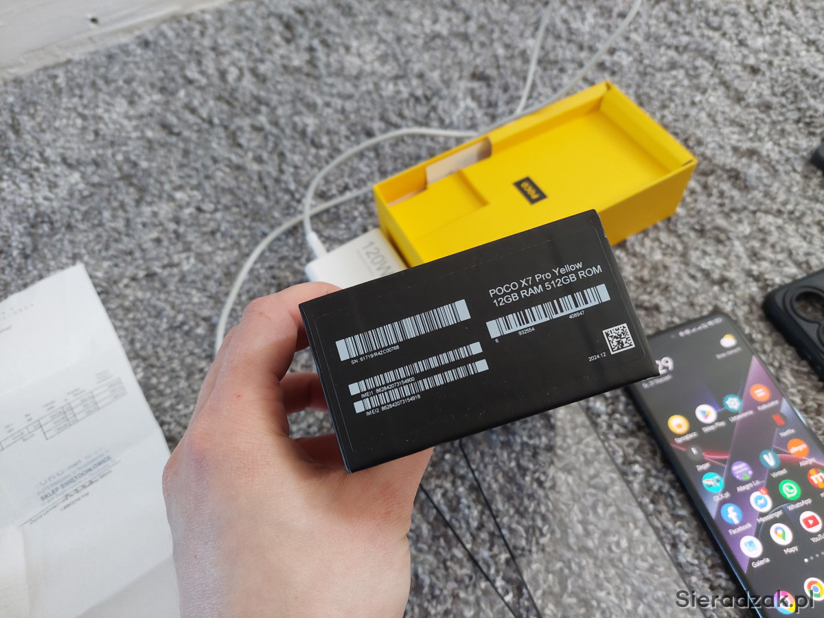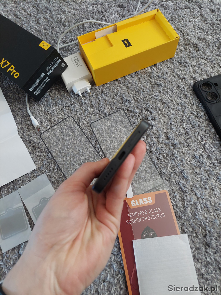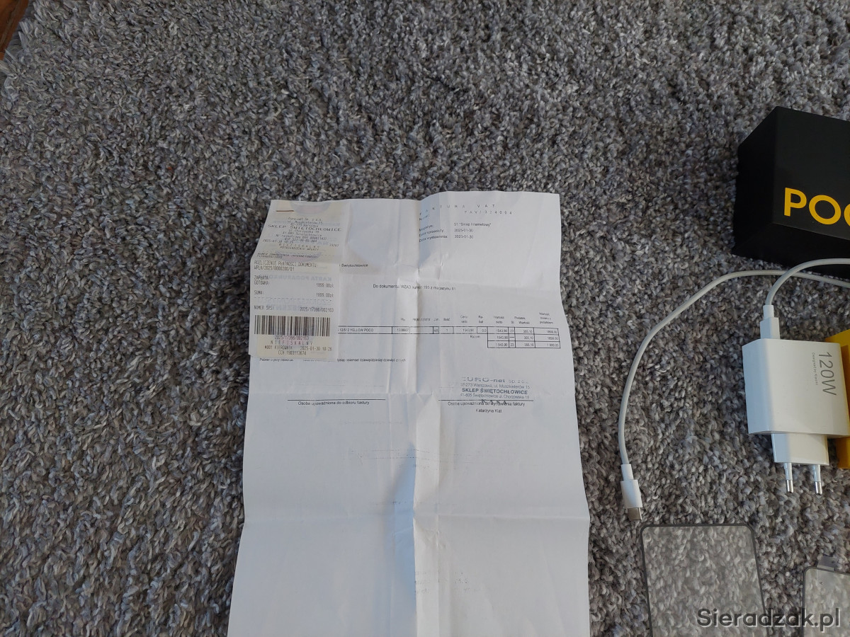- Oryginalną, szybką ładowarkę Xiaomi 120W z kabelkiem USB-C, nie jest ona dodawana standardowo do tego modelu, trzeba ją sobie osobno dokupić, wartość samej ładowarki to około 150 złotych.