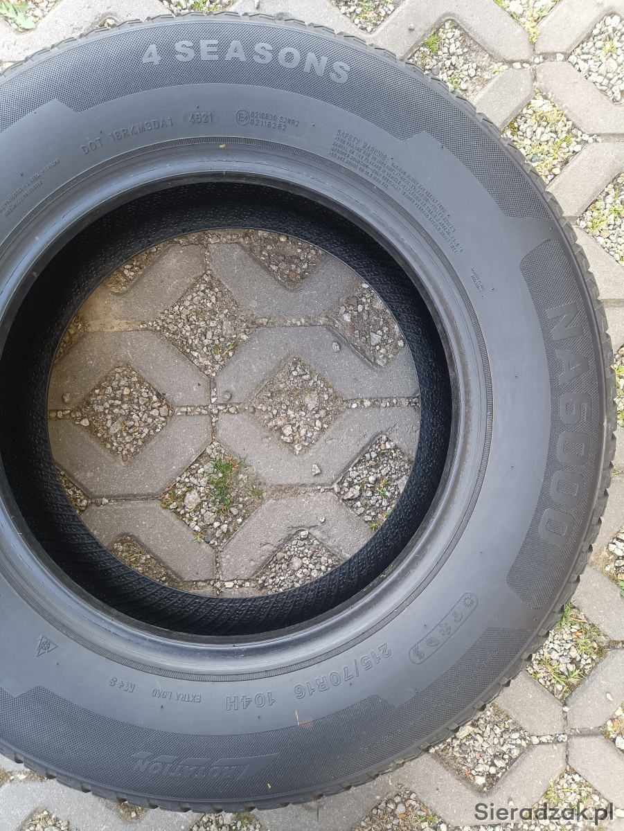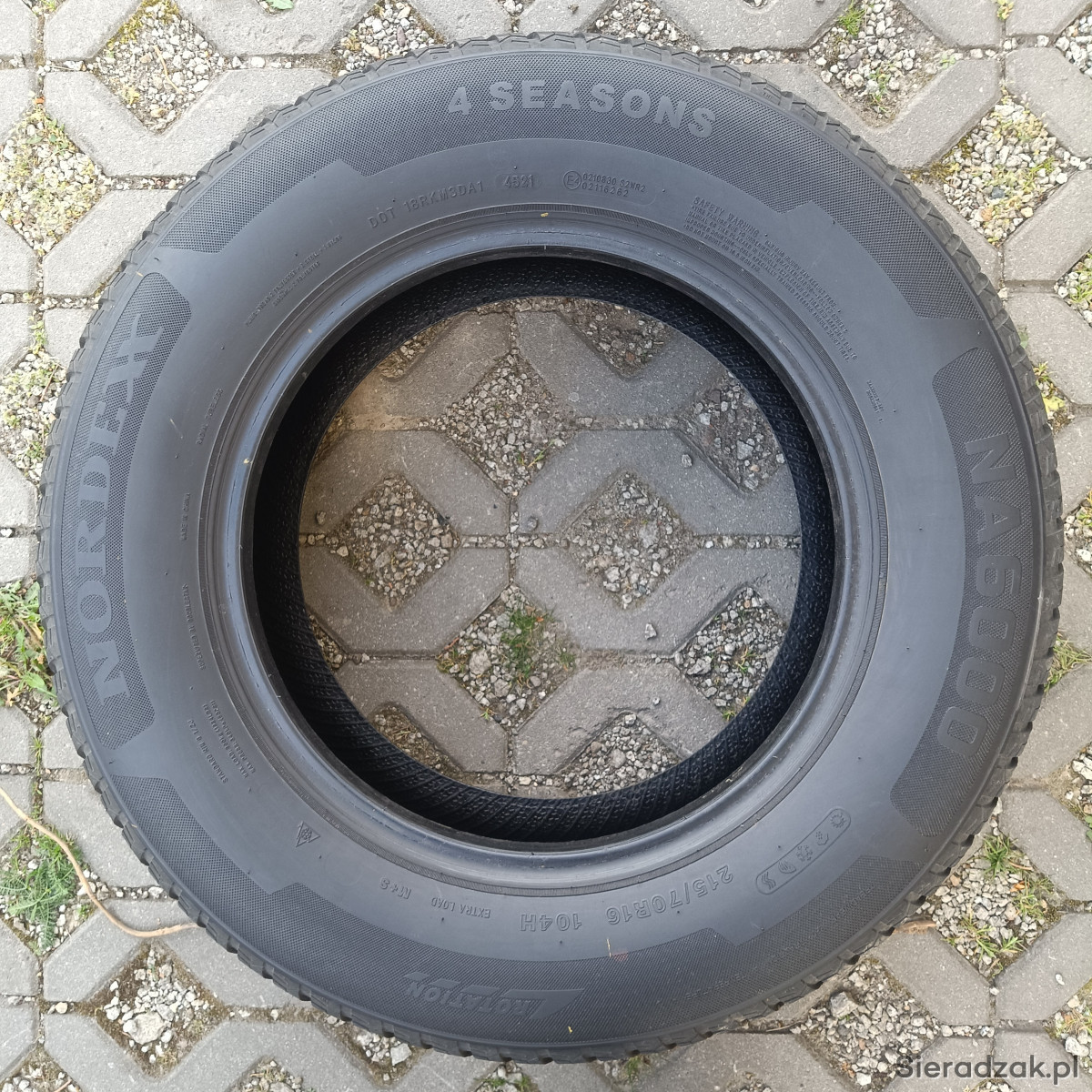 2x opony całoroczne wielosezonowe Nordex 215/70 R16 104H XL, DOT 4521, bieżnik 6,5mm. Opony w bardzo dobrym stanie, po niewielkim przebiegu jak na zdjęciach, sprawdzone ciśnieniowo.