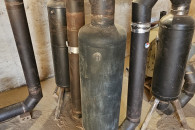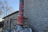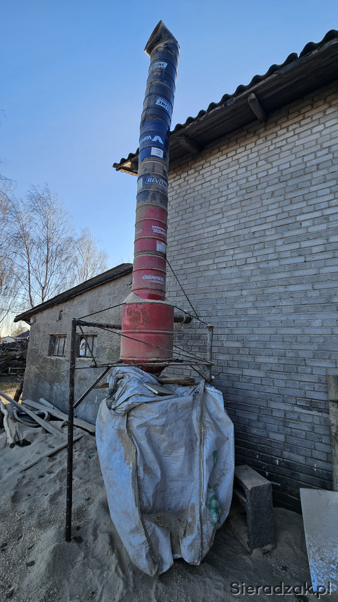Komin samoróbka z beczek. Od dołu 200L, wyżej beczki 60L.