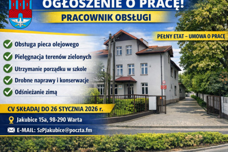 Szkoła Podstawowa w Jakubicach zatrudni osobę na stanowisko pracownika obsługi