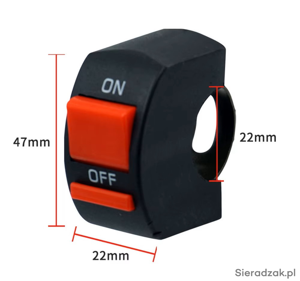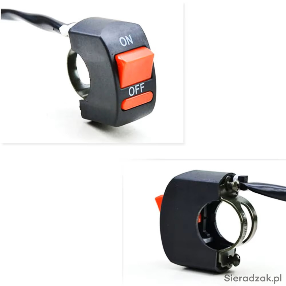 Uniwersalny przełącznik świateł na kierownicę do skuterów, motocykli i quadów jest przeznaczony do włączania/wyłączania dodatkowego oświetlenia montowanego w w.w. pojazdach.