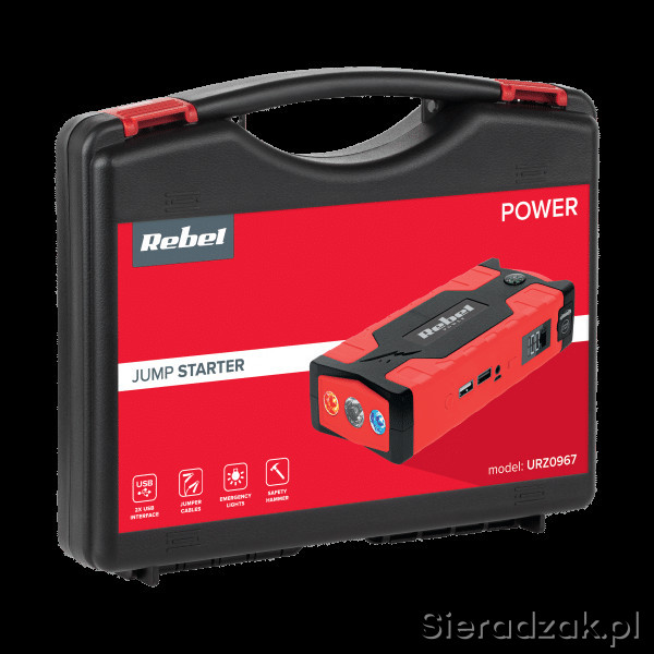 W zestawie: przewody rozruchowe, kabel 3 w 1 (Micro USB, USB-C, Lightning), ładowarka samochodowa, ładowarka sieciowa, instrukcja obsługi