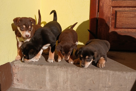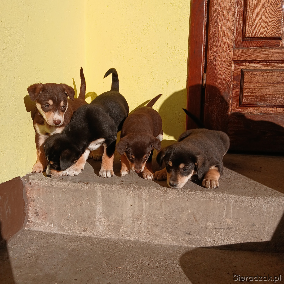 Psiaki są w pełni samodzielne, zdrowe i bardzo energiczne. Mama jest wzrostu ok do kolan, czarne pieski raczej będą podobne do niej natomiast brązowe będą mniejsze. Pieski są towarzyskie i oswojone z ludzmi. Zapraszam do kontaktu. Pozdrawiam