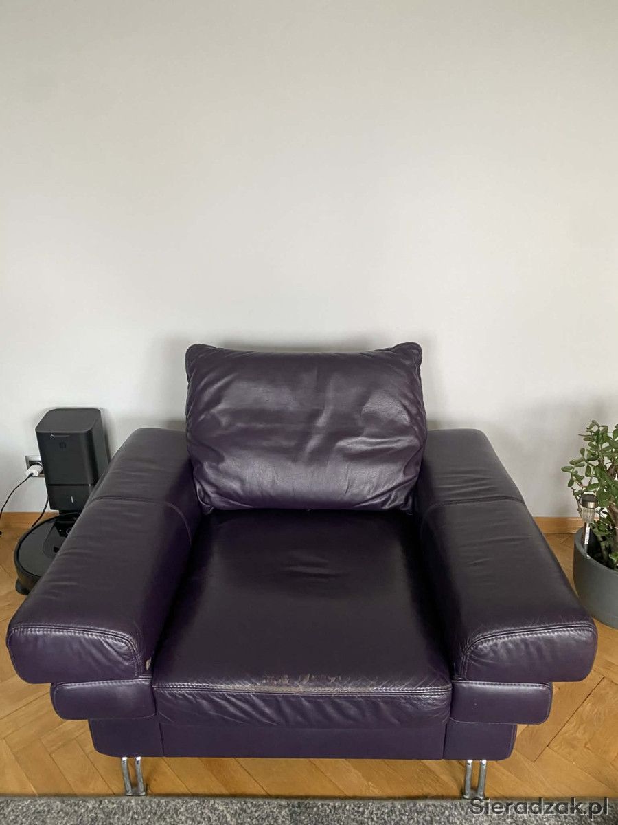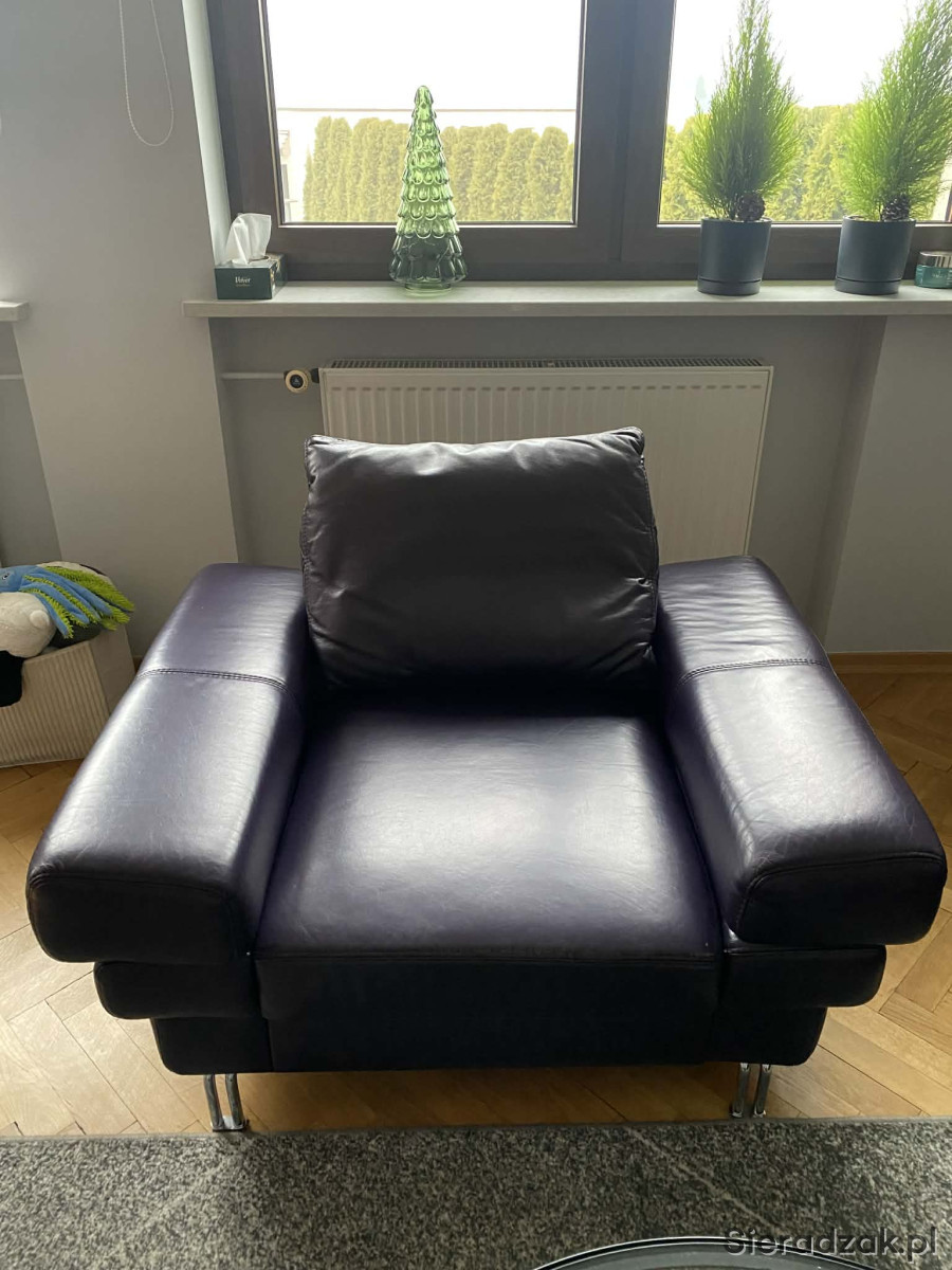 Meble są w pełni sprawne, stabilne i bardzo wygodne. Skóra zadbana, bez pęknięć. Normalne, niewielkie ślady użytkowania widoczne na zdjęciach.