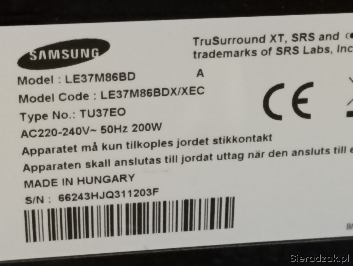Sprzedam telewizor Samsung w dobrym stanie wszystko sprawne 37"Cena do małej negocjacji