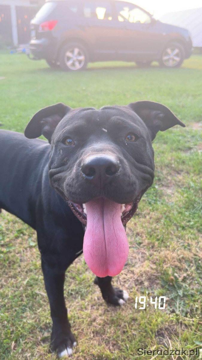Ares roczny amstaff szuka pilnie odpowiedzialnego domu .Wychowany z dziećmi ,zachowuje czystość w domu tylko nie toleruje zwierząt …Sieradz 535699143
