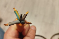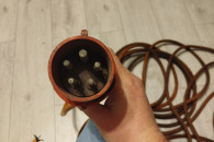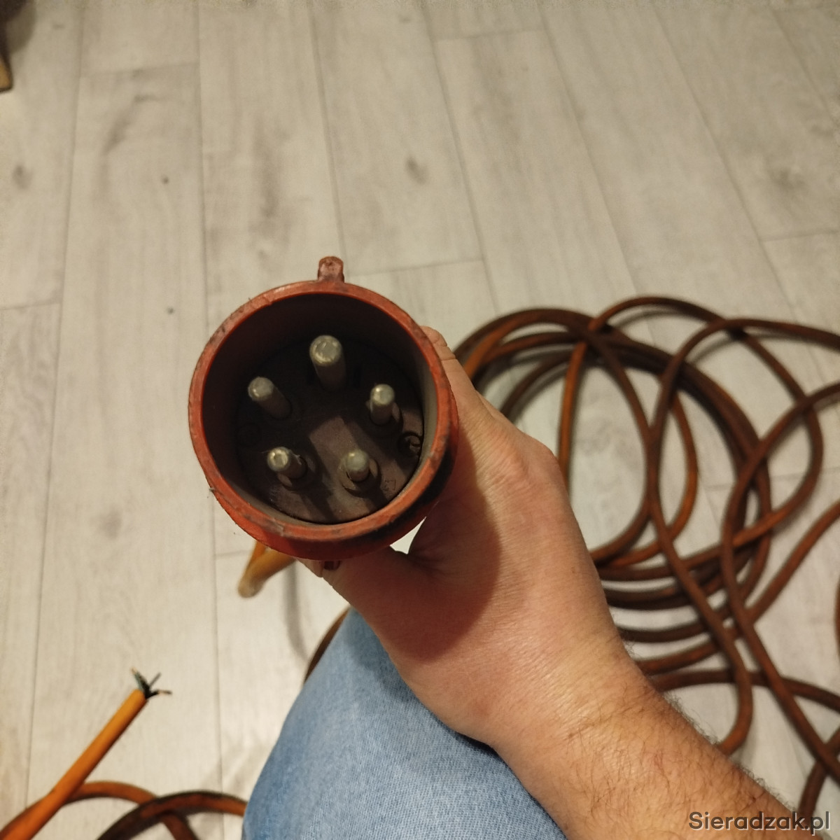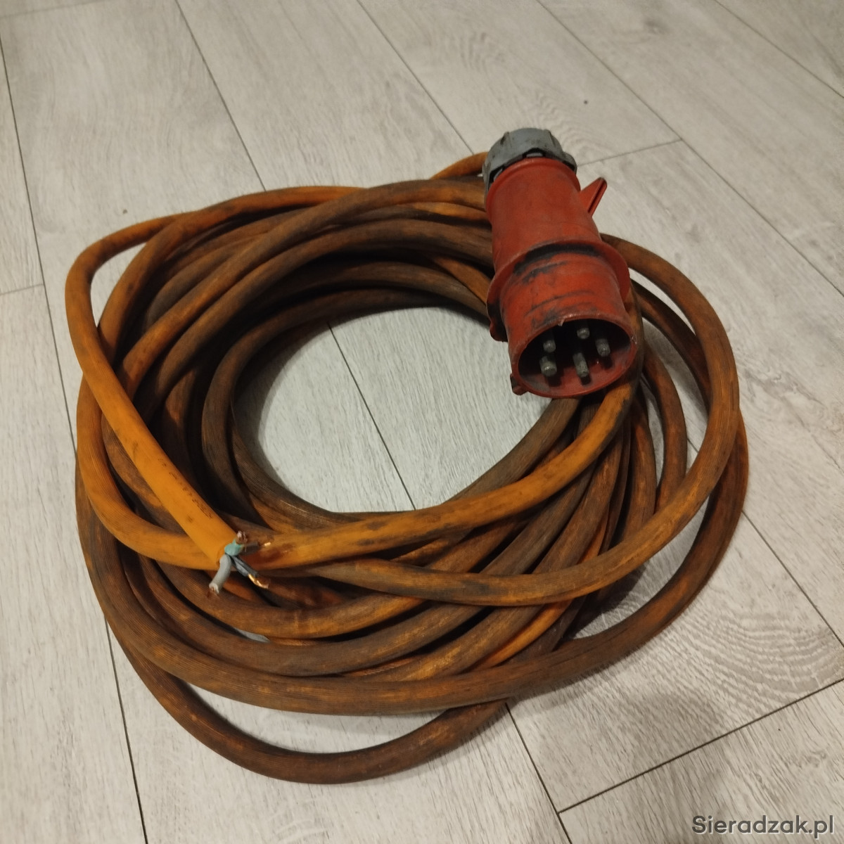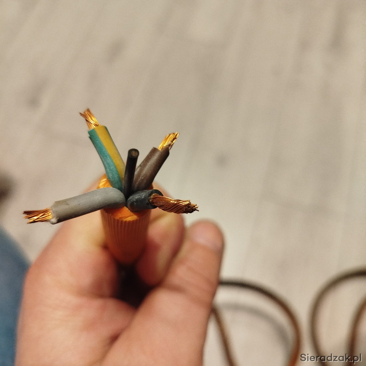 Witam. Przewód siłowy 4 żyły, grubość żyly 2,5 mm. Na jednym końcu gniazdo w komplecie. Długość trochę ponad 18 metrów. Przewód nie jest elastyczny tylko w miarę sztywny. Używany do zasilania chłodni. Tel 796.855.485