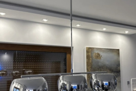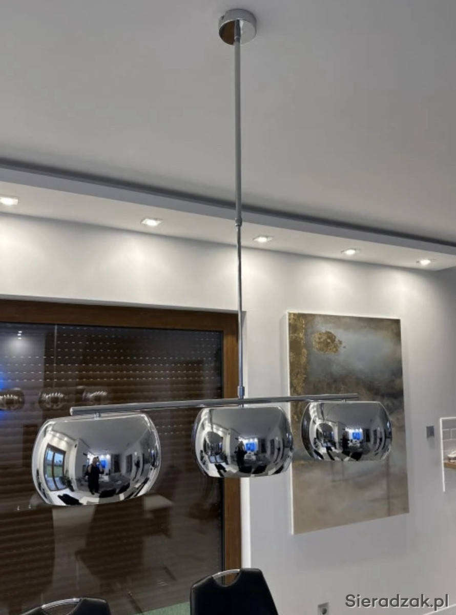 3 źródła światła, regulowana wysokość, zakupiona w Agata meble, kolor chrom, klosze są metalowe, nie prześwitują