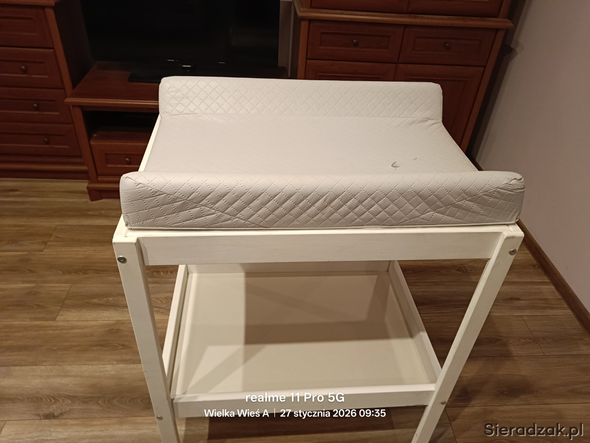 Sprzedam kompletny przewijak drewniany, na macie dwie małe dziurki które nie przeszkadzają podczas użytkowania. Mogę również dołożyć prześcieradełko na matę. Cena 100 zł