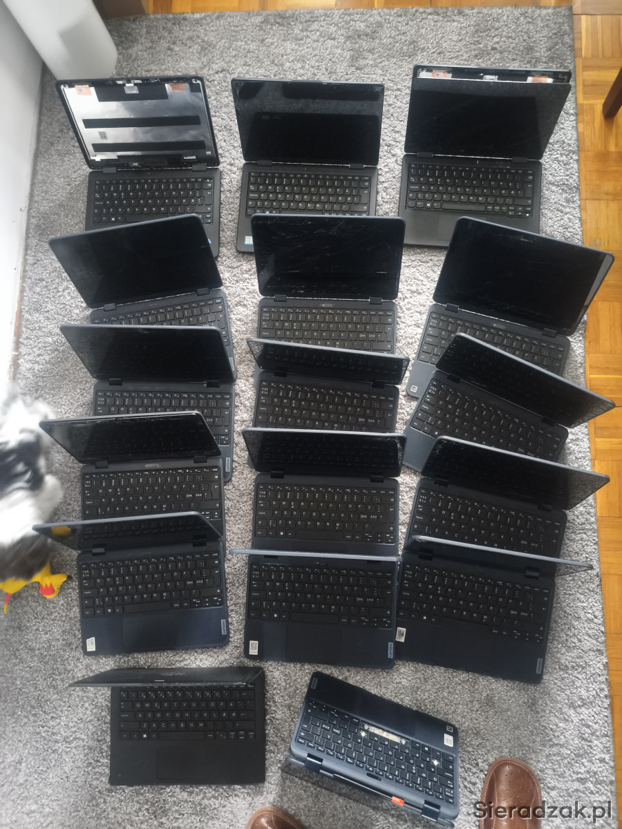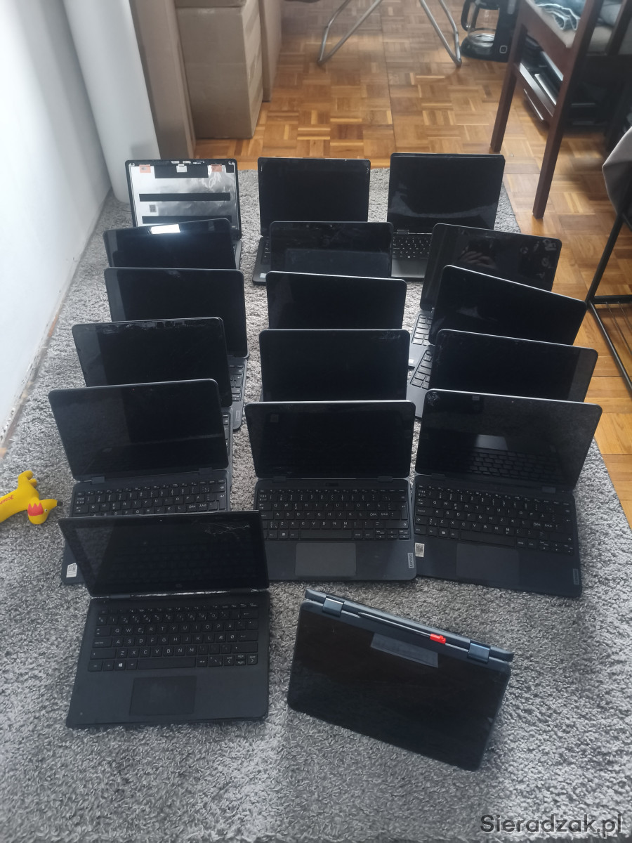 Na sprzedaż mam laptopy 2w1 dotykowe obracane x360 stopni, każdy się uruchamia do bios dalej nie sprawdzane, haseł na bios brak, każdy ma baterie i każda działa oprócz jednej, ale nie testowane ile godzin trzymają, sprzedaje komplet 17 laptopów podana cena to za te 17 sztuk właśnie.