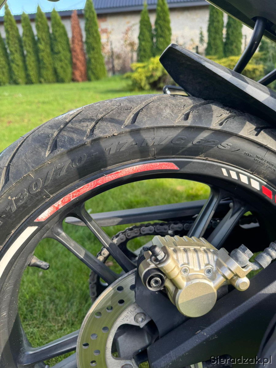 Witam, mam na sprzedaż motocykl Yamaha YZF R125 z 2011r. Motocykl ma przebieg 31734km. Motocykl w moim posiadaniu od lutego 2024 rok. Zakupiony z przebiegiem 25325km W tym czasie zostały wymienione: - Klocki hamulcowe EBC tył - Płyn Hamulcowy tył i przód DOT 4 - Wymiana oleju wraz z filtrem Motul 10w40 5100/ HifloFiltro (26204km) - Przed sezonem 2025 wymiana oleju wraz z filtrem Motul 10w40 5100/ HifloFiltro (29100km) - W maju 2025 zostały zmienione opony na nowe Pirelli Angel C.T 130/70 100/80 powodem wymiany była data produkcji 2018r. - Wymiana oleju Motul 10w40 5100 (30642km) OC ważne do 04.02.2026 przegląd ważny do 28.03.2026 Za dodatkową opłatą dokładam kości obniżające wraz z tylnym amortyzatorem. Motocykl w stanie bardzo dobrym, technicznie jak i wizualnym. Sprzedaje z powodu przesiadki na A2.