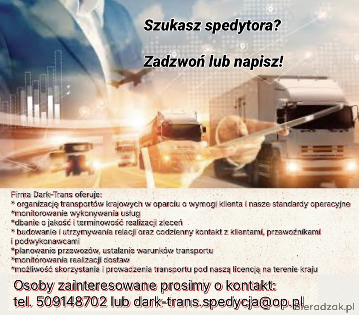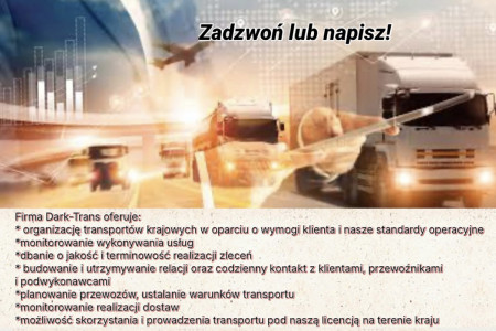 Osoby zainteresowane prosimy o kontakt: tel. 509148702 lub dark-trans.spedycja@op.pl