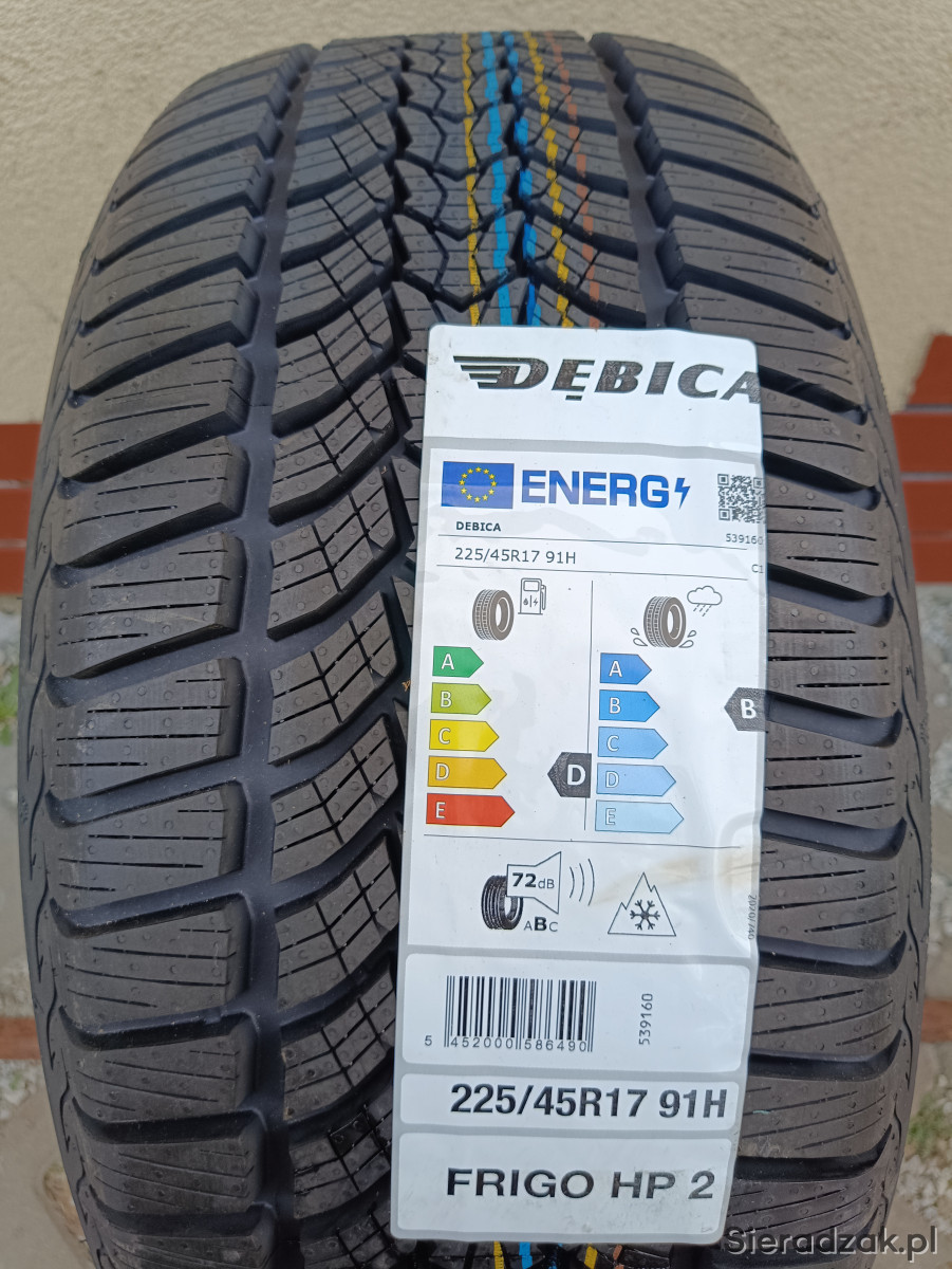 NOWE opony zimowe Dębica Frigo HP2 225/45 R17 91H, rant ochronny. Opony koncernu Goodyear, produkcja Niemcy, bardzo dobre opony z klasy ekonomicznej w przystępnej cenie.