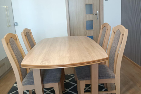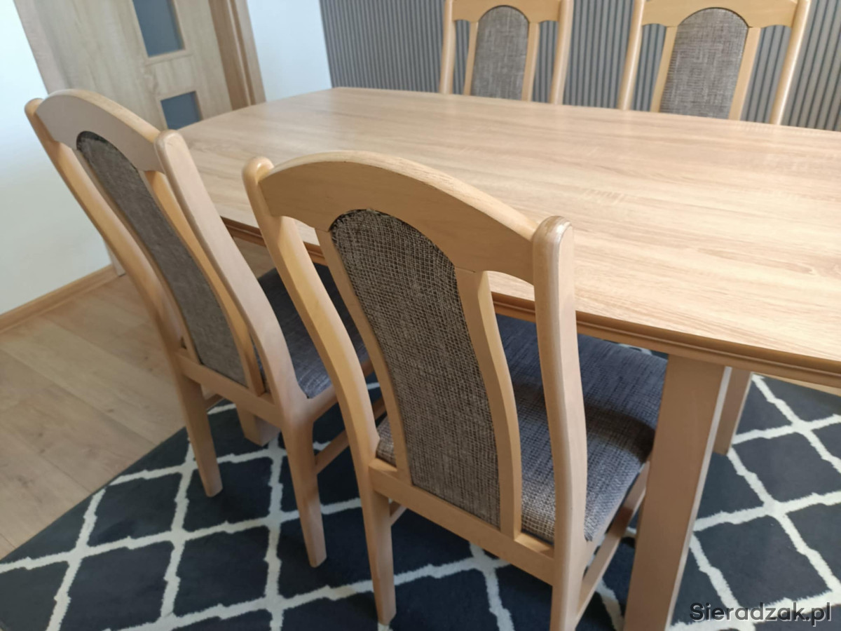 Stół rozkładany do prawie 2m z 8 krzesłami. Stan bardzo dobry.