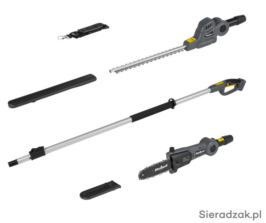 W zestawie: osłona łańcucha, osłona ostrza, pasek, wysięgnik teleskopowy, instrukcja obsługi