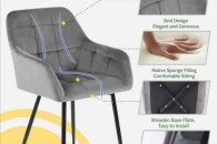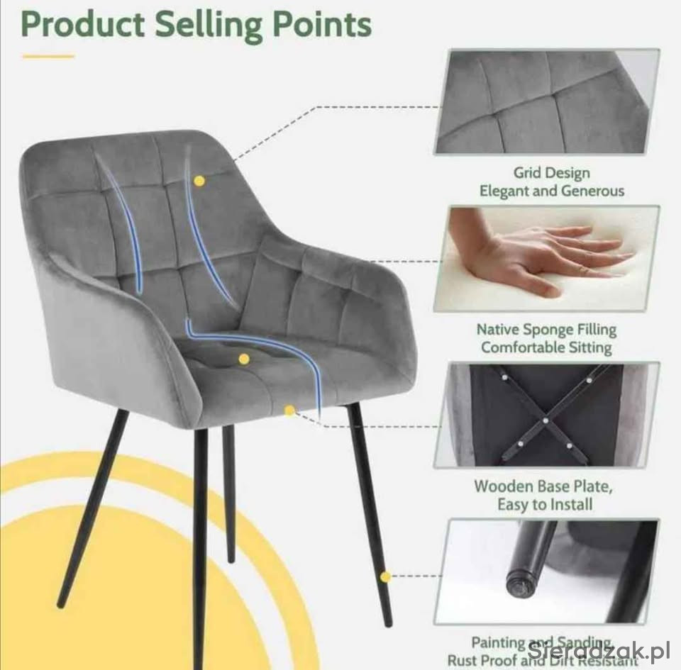 Wygodne, tapicerowane krzesła w kolorze szarym Flamingo. Wykonane z wysokiej jakości materiałów, nadają się do salonu, jadalni lub biura. Stylowy i nowoczesny design doskonale sprawdzi się w każdym wnętrzu. Super materiał, aksamitny w dotyku, bardzo łatwy w utrzymaniu czystości. Solidna konstrukcja na metalowych nogach zapewnia stabilność i wytrzymałość.