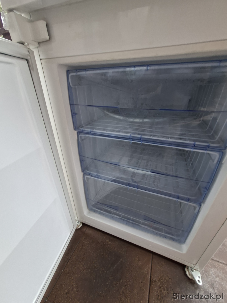 Lodówko-zamrażarka firmy Ardo, do zabudowy. Lodówka działa sprawnie, poza tym, że woda spływa do komory lodówki (i co tydzień trzeba było to wycierać). Zamrażarka działa bez zarzutów. Brak oryginalnej dolnej półki (jest zamienna szyba) I w zamrażarce jest kilka pękinięc szuflad. Poza tym, posiada wszystkie elementy. Oddam za merci:)