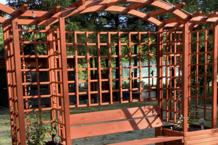 „Słoneczny Zakątek” to pergola ogrodowa wykonana ręcznie z drewna.