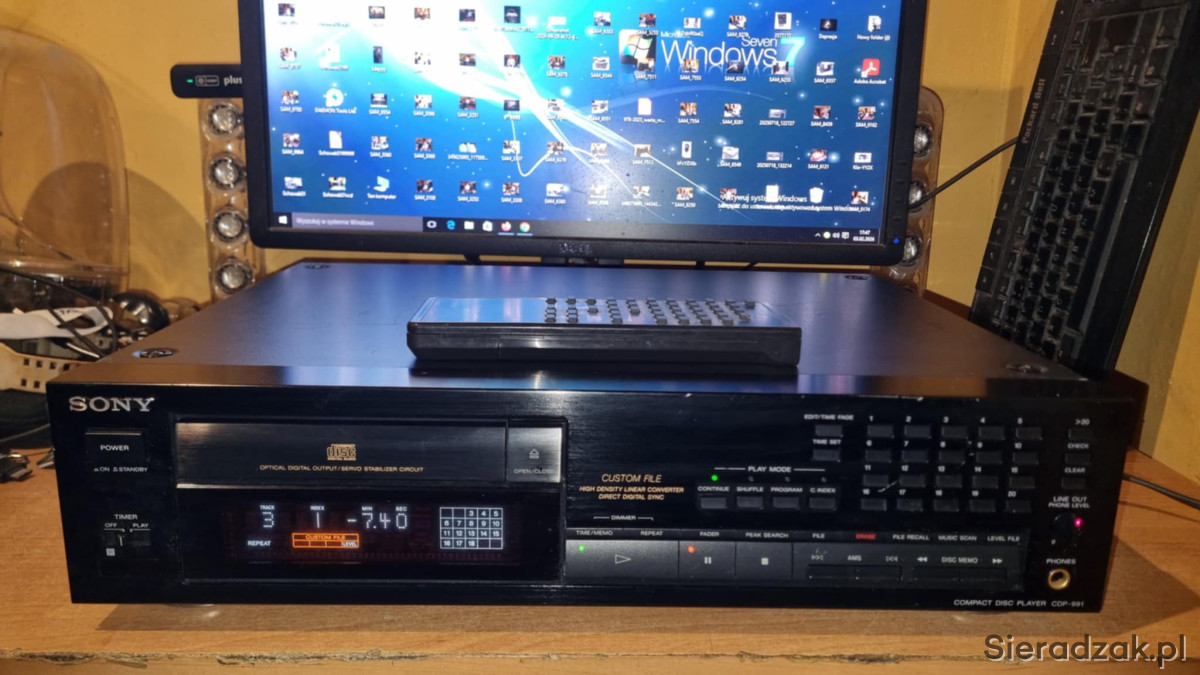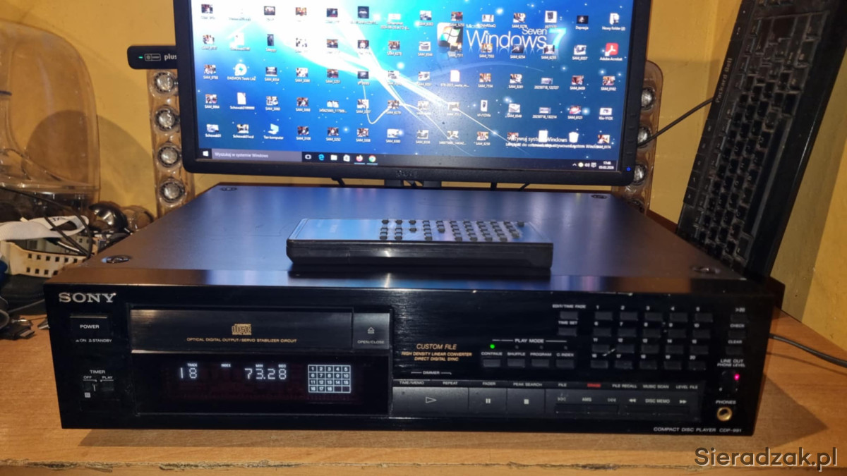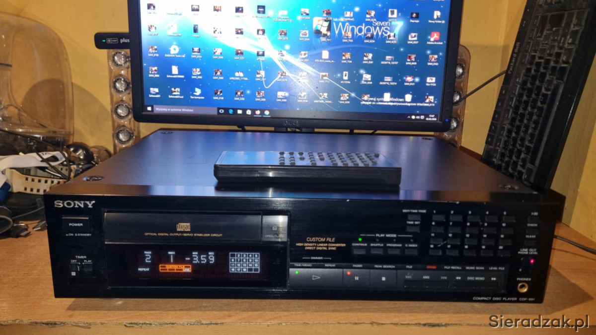 Odtwarzacz CD Sony CDP-991 TOPOWY MODEL z wyjściem cyfrowym optycznym i pilotem.