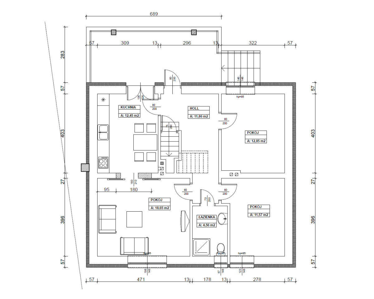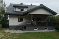 - dom piętrowy o powierzchni użytkowej 140 m2 + duża, wysoka piwnica 90 m2 + poddasze + zadaszony taras