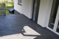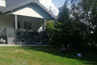 Nieruchomość, oddalona nieco od głównej drogi, pozwala na idealny odpoczynek na tarasie, z którego słychać jedynie szum otaczających dom pięknych, wysokich drzew.