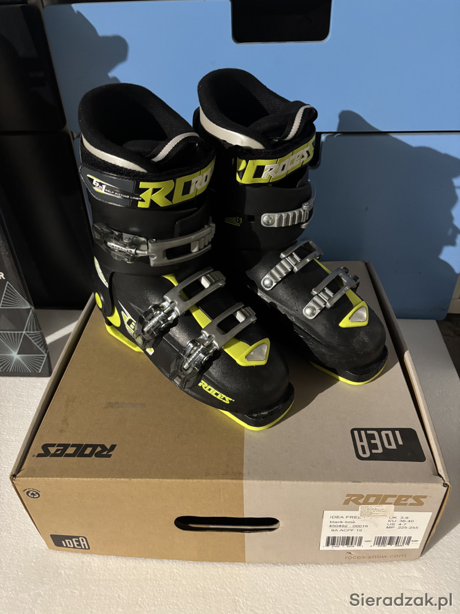 Sprzedam buty narciarskie firmy Roces. Regulacja rozmiaru w zakresie 36-40. Buty są w bardzo bobrym stanie co widać na zdjeciach. Bardzo fajna opcja dla dorastających, dzięki regulacji buty nie są na jeden sezon.