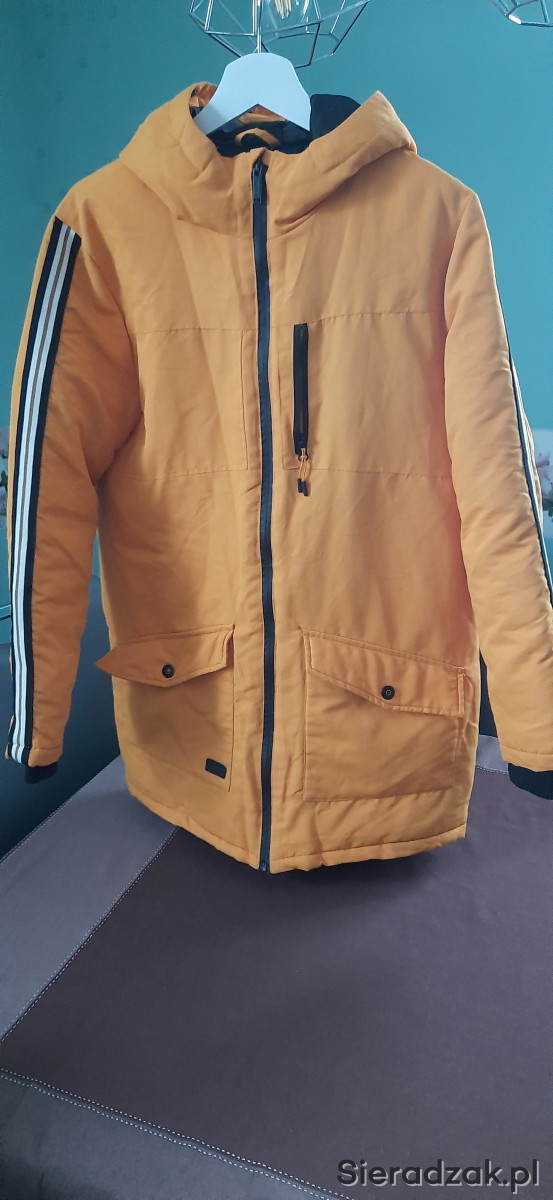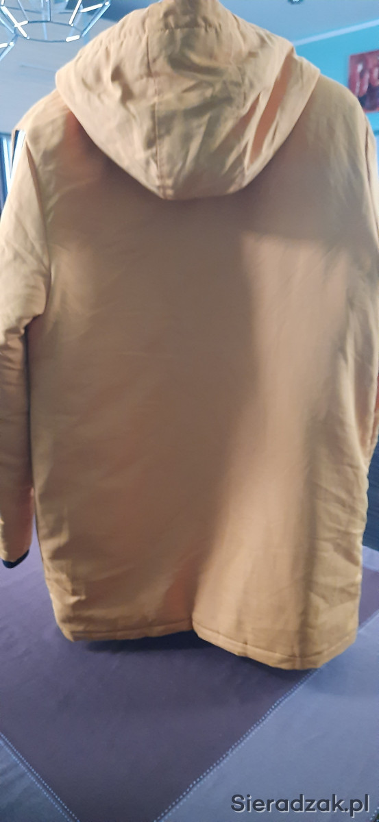 W dobrym stanie, bardzo ciepła, przedłużana. Z kapturem, brak dopinanego futerka do kaptura. Bez zniszczeń, plam.