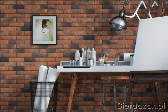 Płytki ścienne Loft Brick Chili. Wymiary 24.5x6.5x0.8 cm. 6 paczek po 0.6 m2 .Razem 3.6 m2.. Pozostałość po remoncie. Opakowania lekko podniszczone. Możliwość transportu na terenie Sieradza lub okolic.