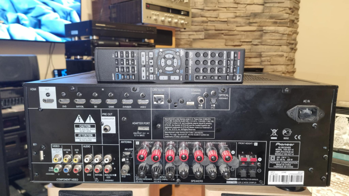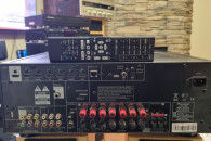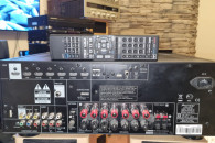 - Gniazda: 1 wejście / wyjście component z możliwością przypisania, 3 wejścia / 1 wyjście composite, 1 cyfrowe wejście / wyjście optyczne z możliwością przypisania, 1 współosiowe wejście cyfrowe z możliwością przypisania, ethernet, 6 wejść / wyjście, wejście słuchawkowe, duże gniazda głośnikowe