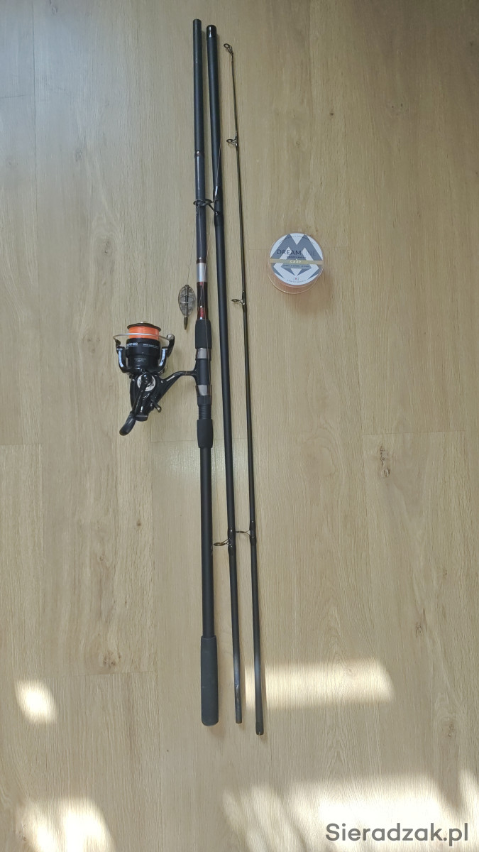 Wędka karpiowa Jaxon Zaffira Carp 3-składniowa o długości 360 cm z kołowrotkiem Jaxon Satori FRT o rozmiarze 6000. Na kołowrotek nawinięta jest żyłka marki DreamLine Carp którą dołączę również do zestawu.