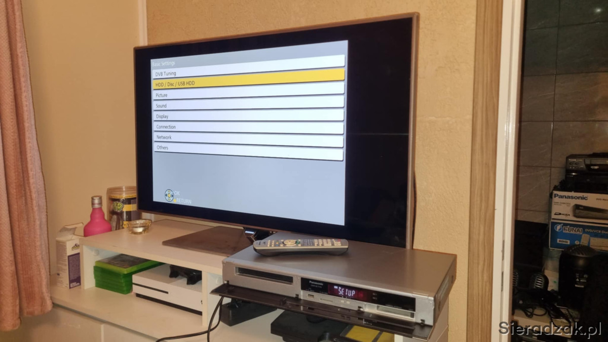 Sprawna stan jak na foto. Pilot i kabel zasilający w komplecie.