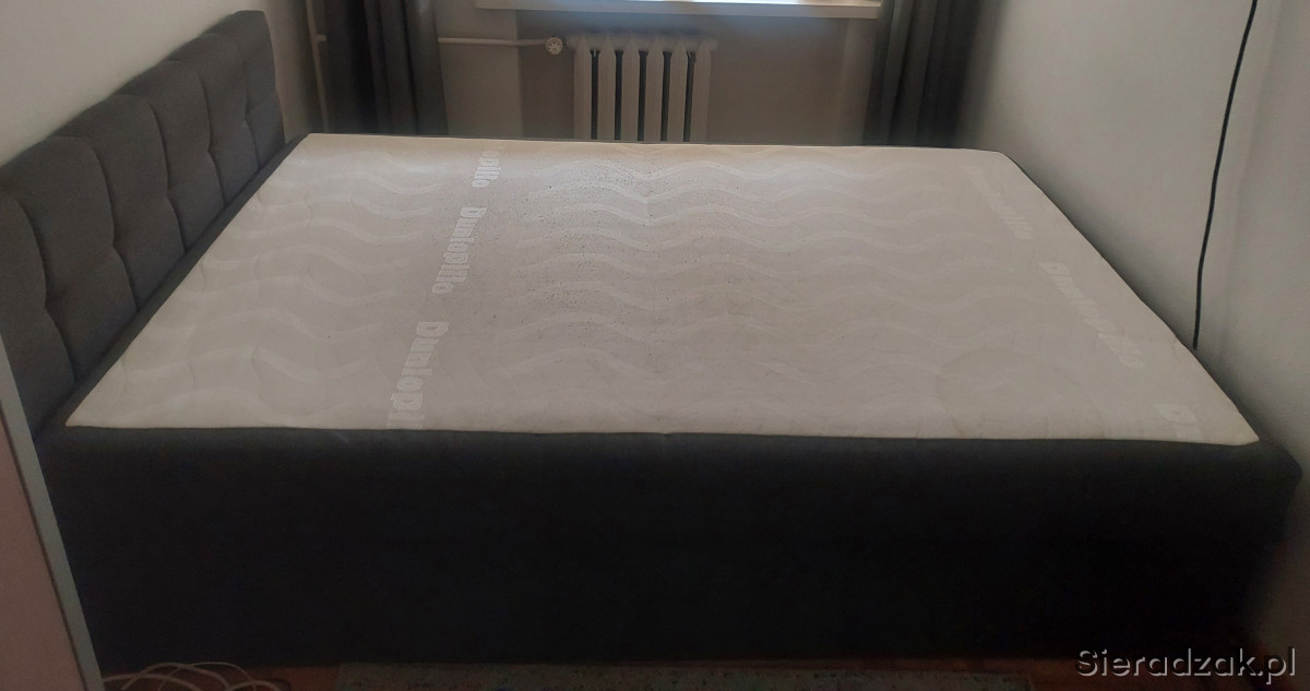 W ofercie łóżko kontynentalne tapicerowane z wbudowanym materacem. Powierzchnia spania 130x200 cm.Wysokość łóżka ok. 47 cm. Kolor ciemny szary. Łóżko posiada zagłówek oraz pojemnik pod całą szerokością łóżka. Wysokość zagłówka 82 cm. Łóżko w bardzo dobrym stanie, jedynie na materacu niewielkie ślady użytkowania.