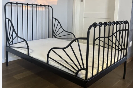 Czarne łóżko z Ikea. Wymiar 80x200. Rośnie razem z dzieckiem, aby zawsze miało łóżko dopasowane do swojego wzrostu. Sprytny i praktyczny wybór, który pozwoli w prosty sposób stworzyć przytulne miejsce do spania, którego potrzebuje Twoje dziecko. Cena w sklepie 499zł.