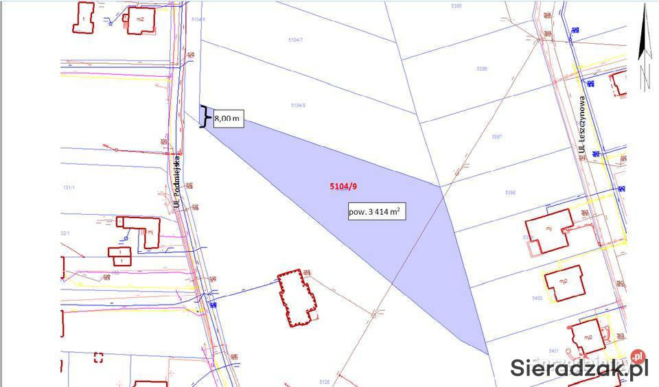 Działka budowlana o numerze geodezyjnym 5104/9, o powierzchni 3414 m2, położona w Sieradzu przy ul. Podmiejskiej.